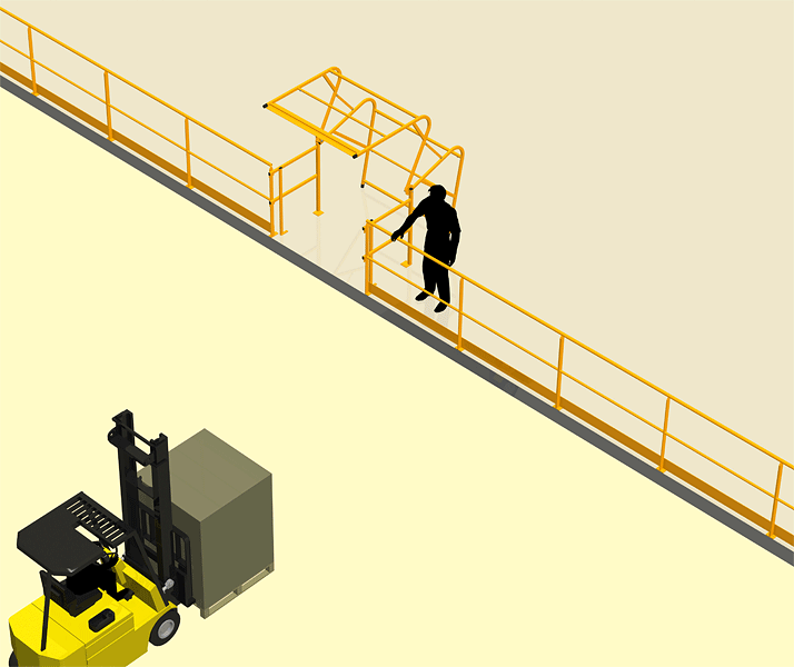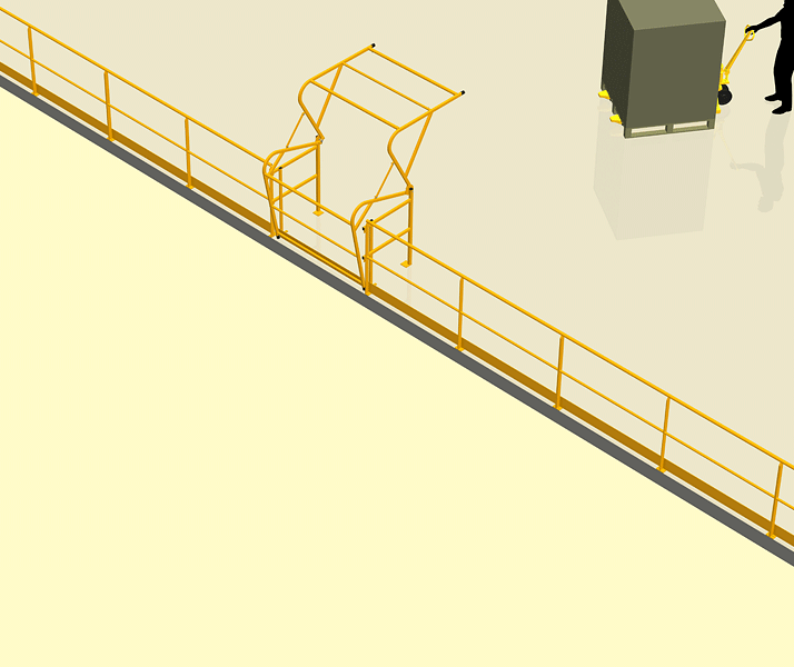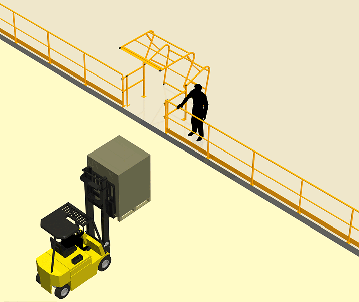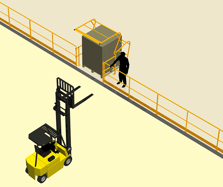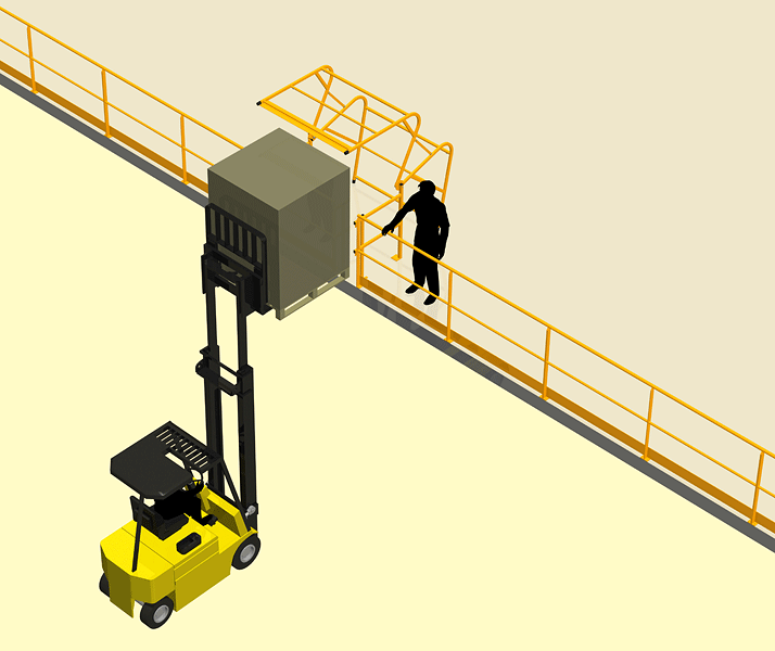 1. La zone de réception des marchandises est isolée par le garde-corps.