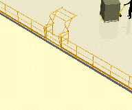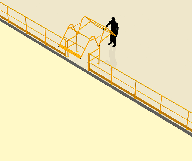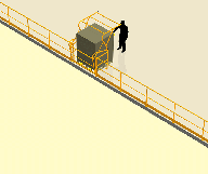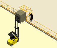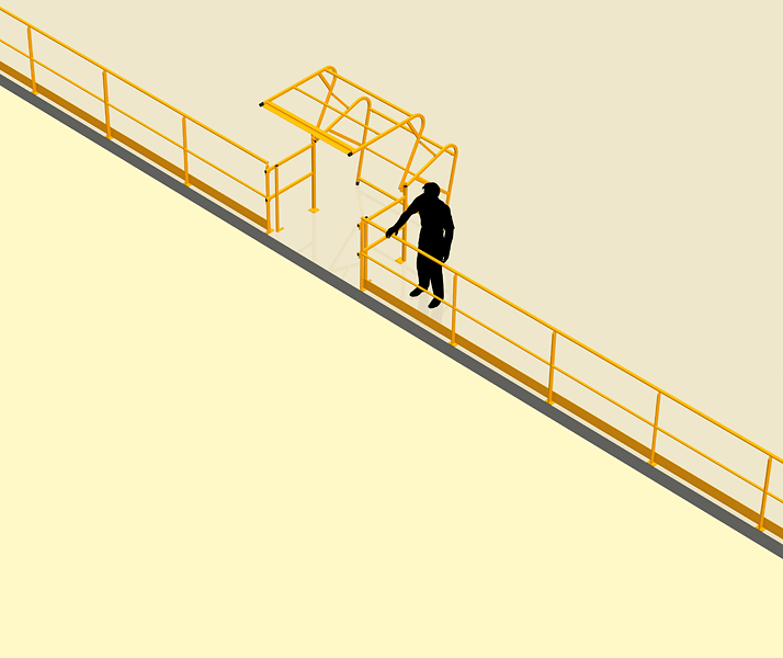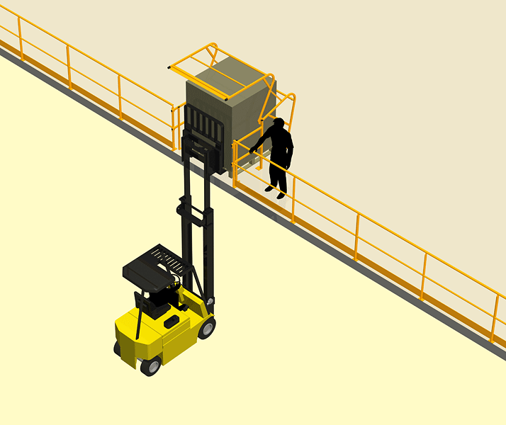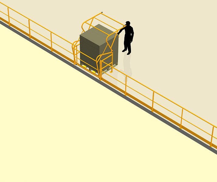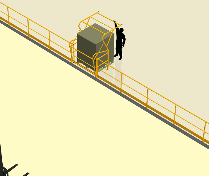 L'opérateur replie le garde-corps arrière, basculant le garde-corps devant le vide.